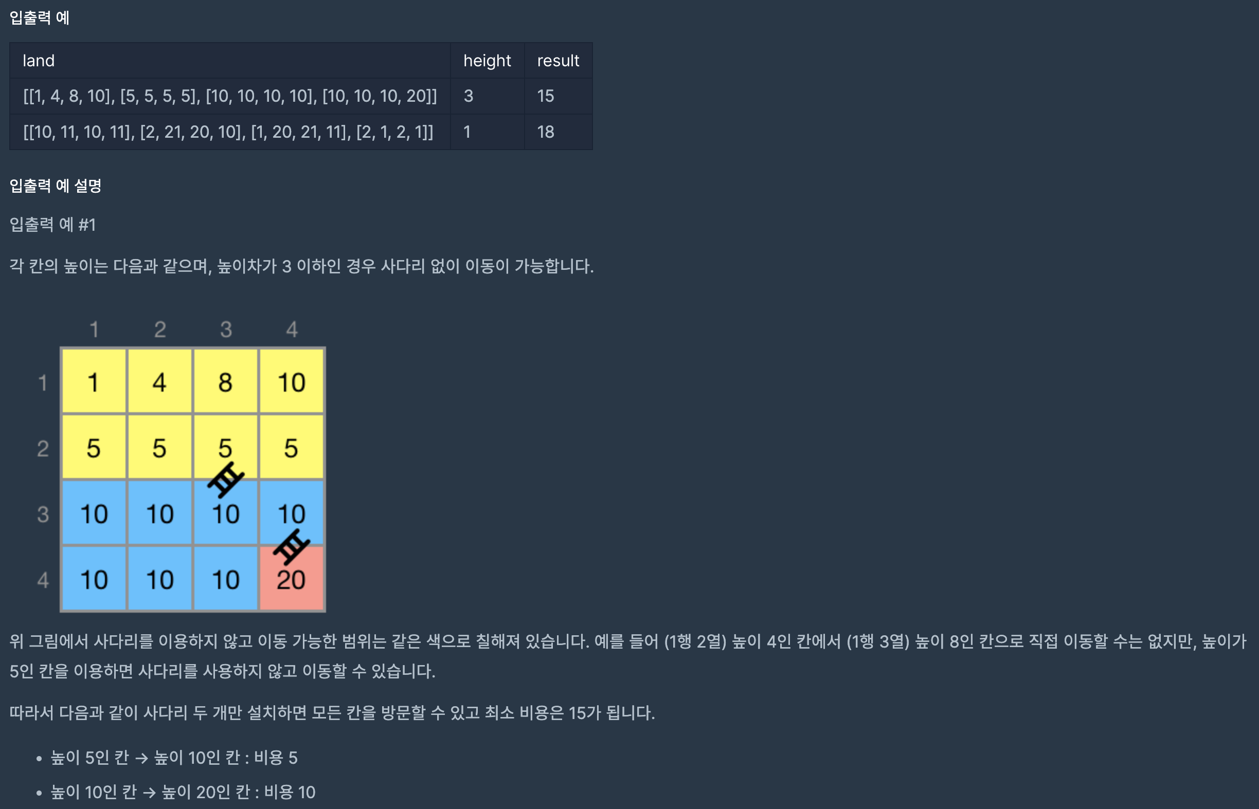 - 해당 좌표의 높이와 노드의 높이의 차가 height 넘는다면 비용을 계산하고, 아니라면 비용은 0이다.