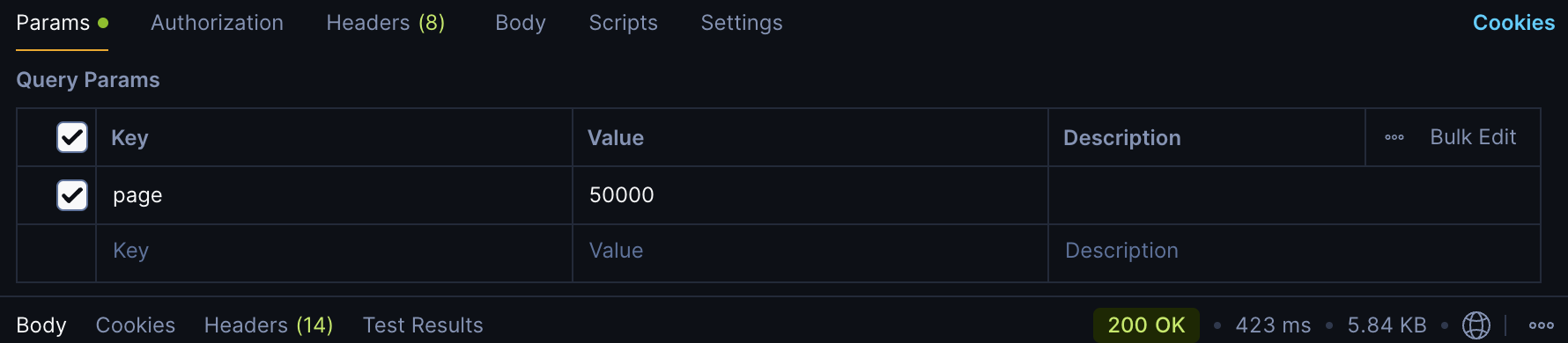 MongoDB에 100만 개의 더미 데이터를 삽입한 후, Postman을 이용해 API 테스트를 진행하였습니다.